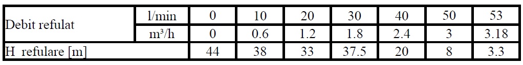 | Inaltime de refulare (m) | 44 |
