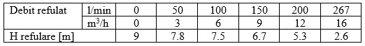 | Inaltime de refulare (m) | 9 |
